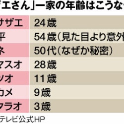 磯野家の年齢がおかしい…サザエ24歳、マスオ28歳、タラ3歳、波平54歳、フネ50代、カツオ11歳 2014年07月05日 磯野家の年齢がおかしい…サザエ24歳、マスオ28歳、タラ3歳、波平54歳、フネ50代、カツオ11歳 1 : 超竜ボム(神奈川県)@\(^o^)/:2014/07/03(木) 21:32:40.76 ID:YAtTGJ5I0.net一方、フグ田サザエさんは、一見、年齢不詳。この年齢不詳の見た目で、女性読者は自分と重ね ... もっと読む