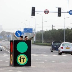 【画像】壊れた信号の代わりに自ら信号となる中国人が話題に